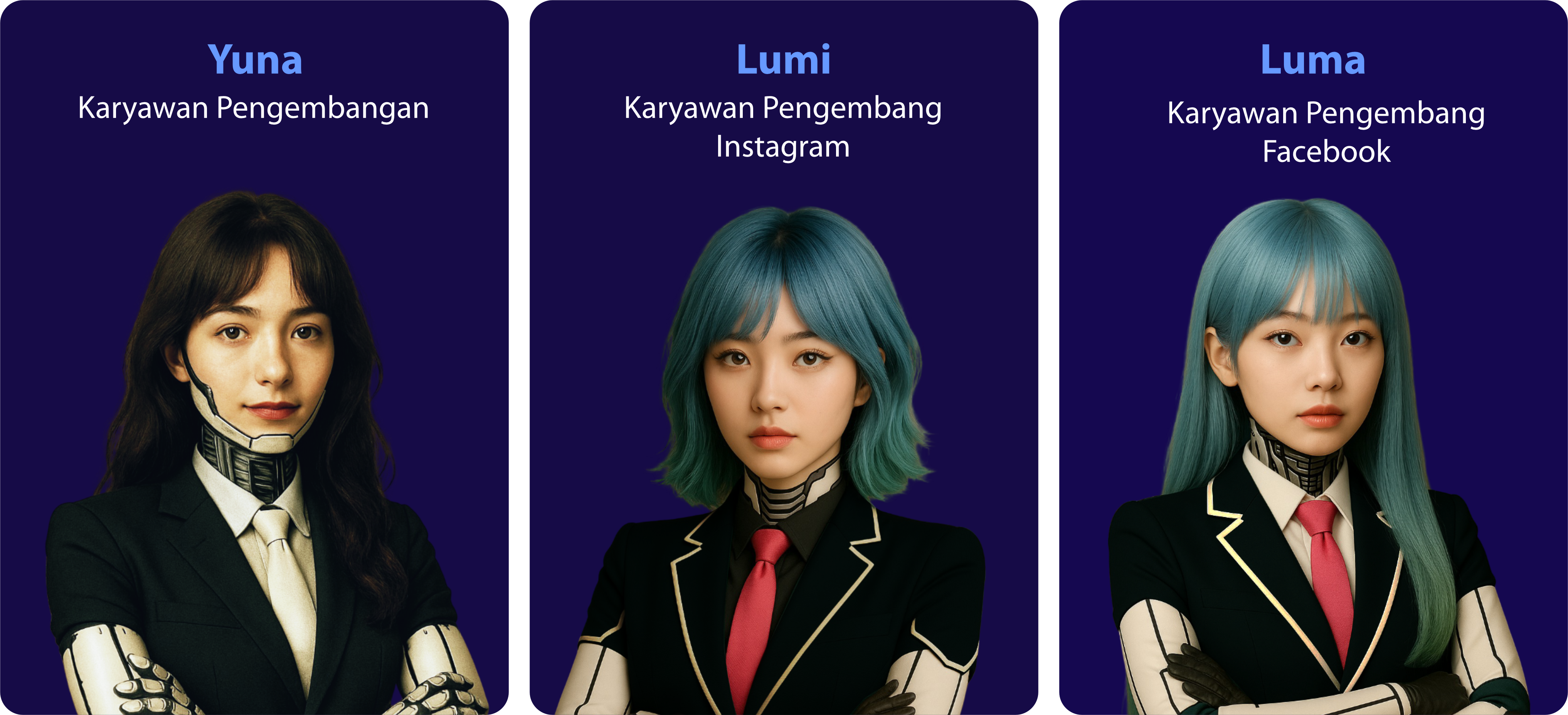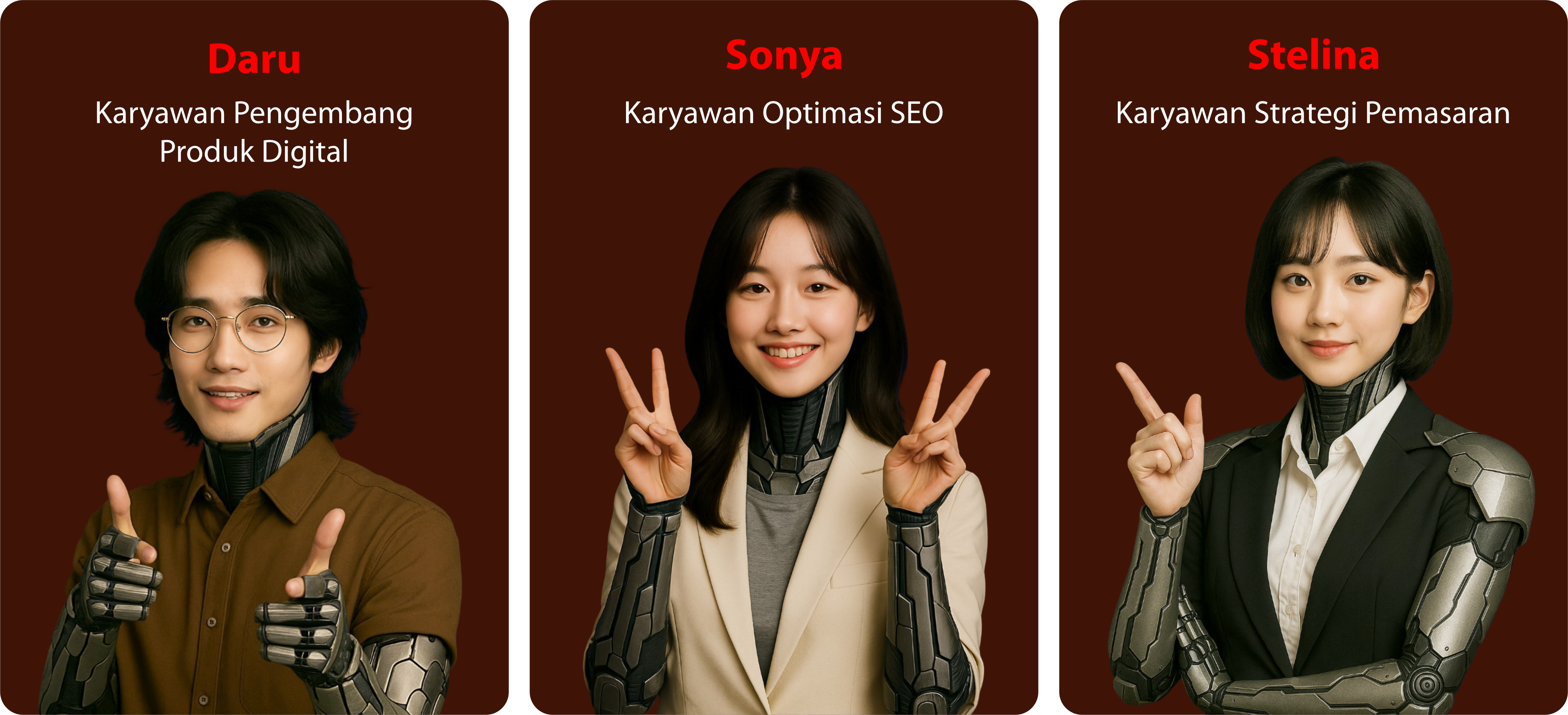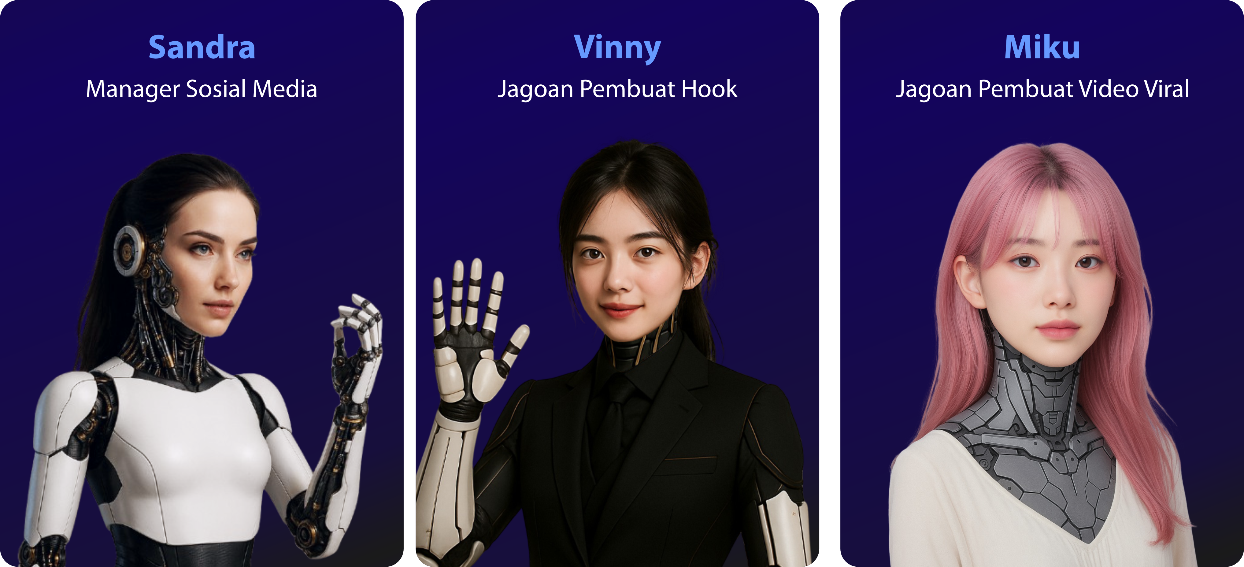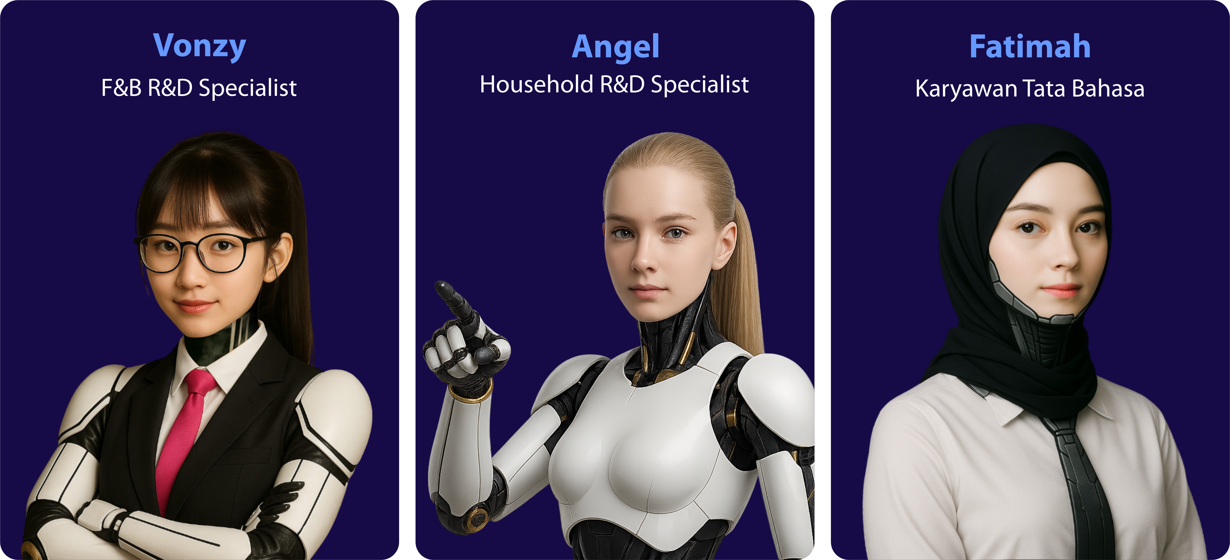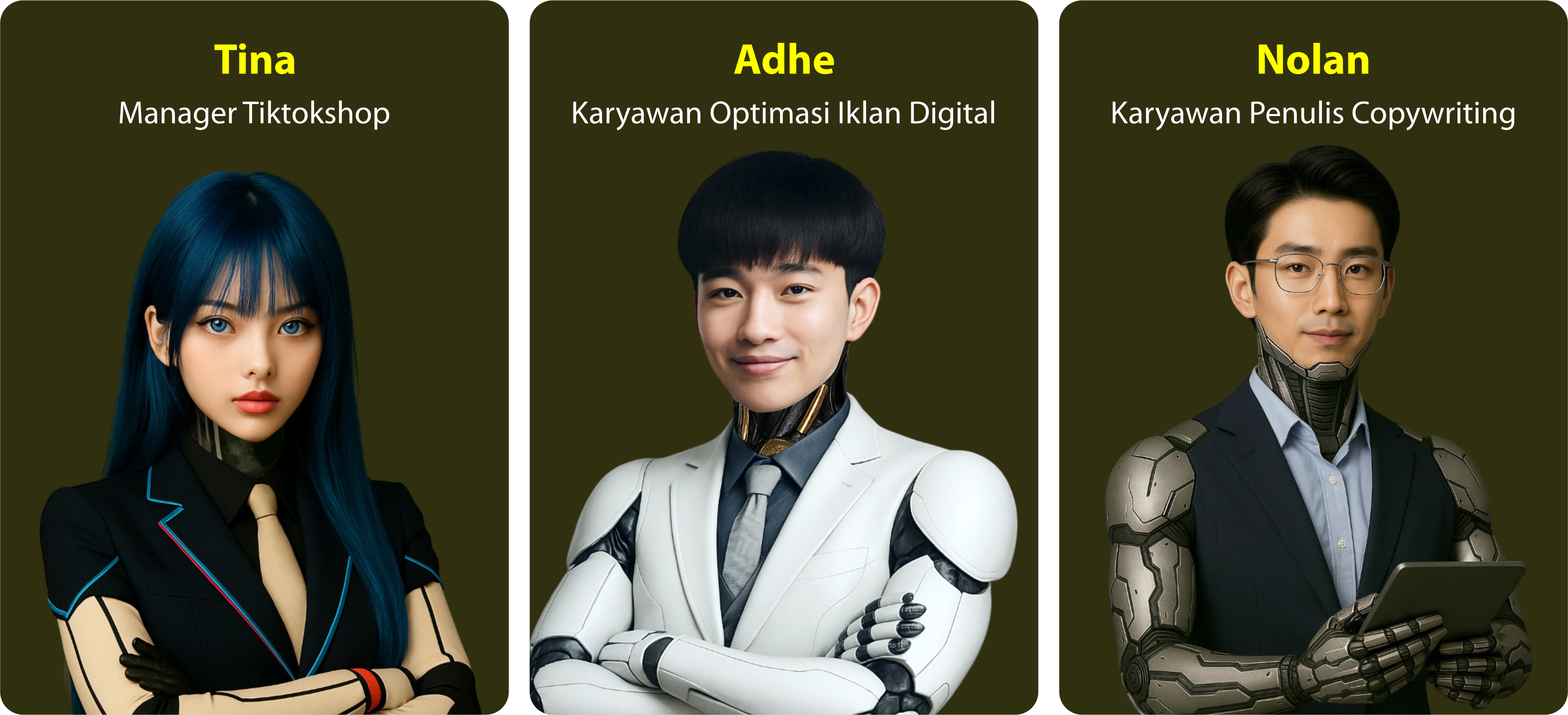 Karyawan Pintar yang memiliki spesialis masing-masing, yang dirancang dengan cermat oleh para ahli AI untuk menangani fungsi bisnis tertentu. Dengan Karyawan Pintar, kamu bisa menyerahkan tugas-tugas bisnis yang rumit ke "ahli AI" yang sudah terlatih di bidangnya masing-masing — semua bisa diakses lewat tampilan yang simpel dan gampang dipakai.